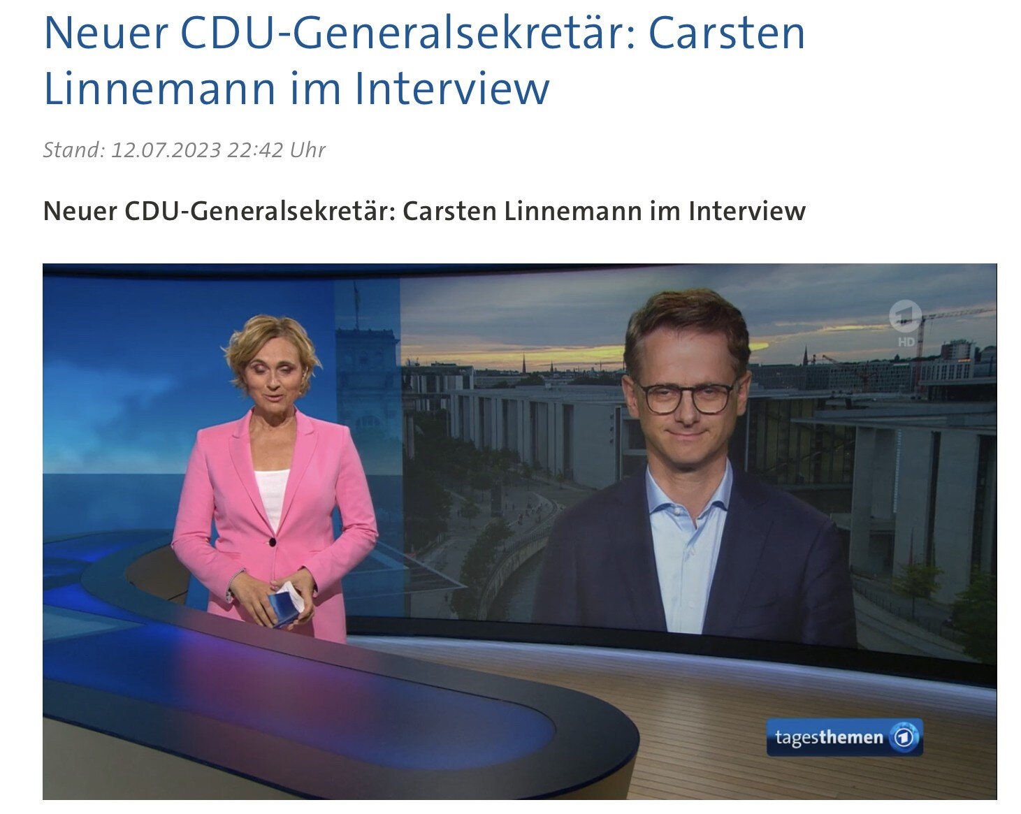 Also stĂŒrmen wir mit General Carsten und seinem Herzen voller Geschichten in die Tagesthemen. Was er denn in der CDU verĂ€ndern wolle - so Ă€hnlich hieĂ die Frage. Und dann kommt - in einer Antwort - alles auf einmal: Leistung, Fordern, Fördern, BĂŒrgergeld, Rechtsstaat und der ewige Bauarbeiter, der nicht bis 63 arbeiten kann - alles in einem Satz. Das kann rhetorisch nicht funktionieren.